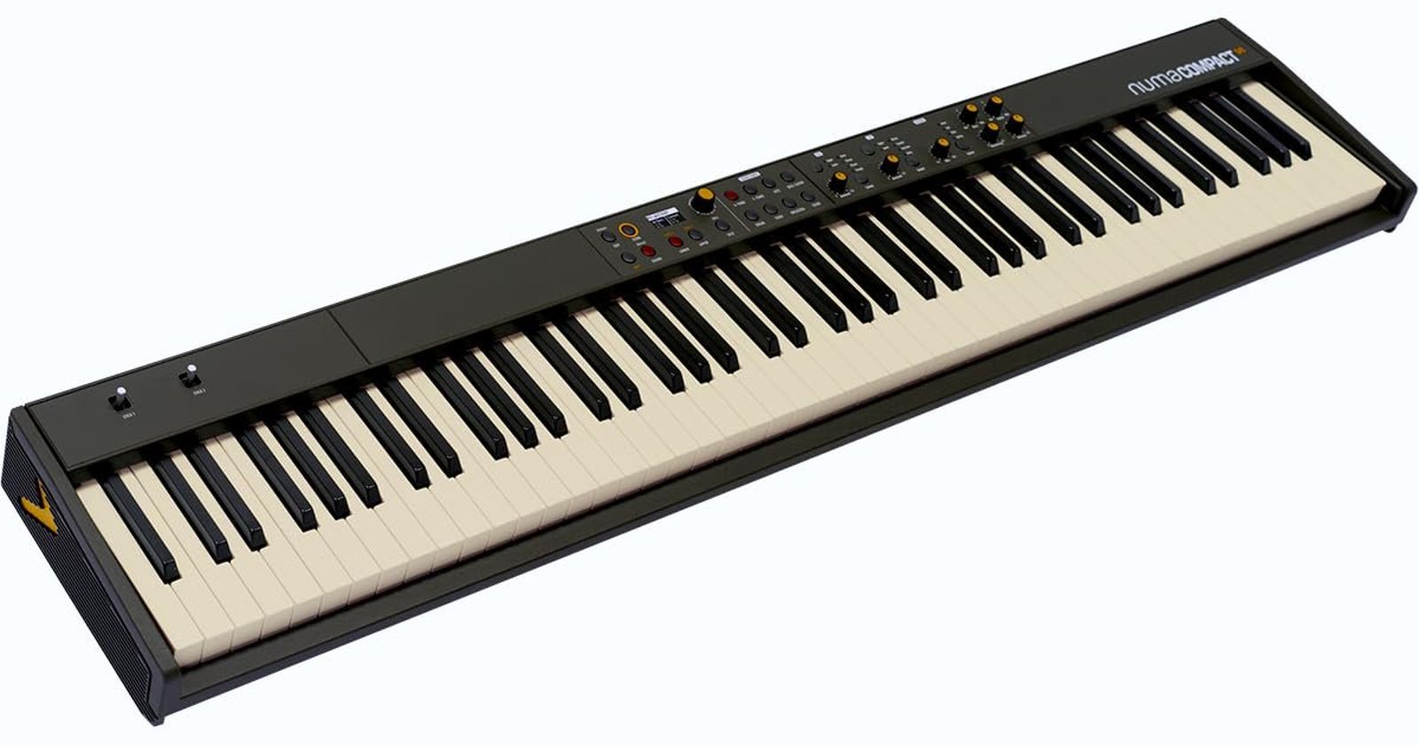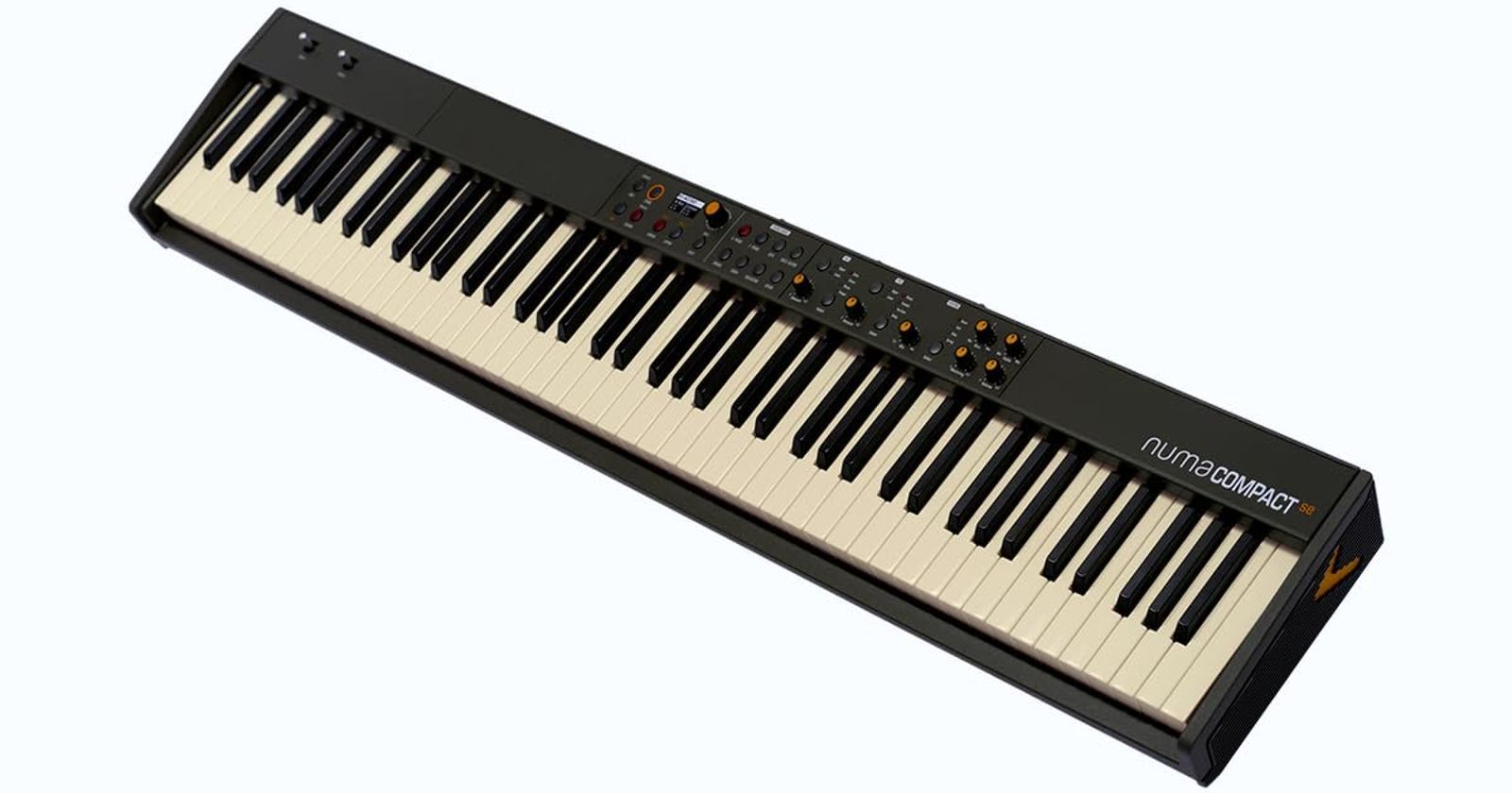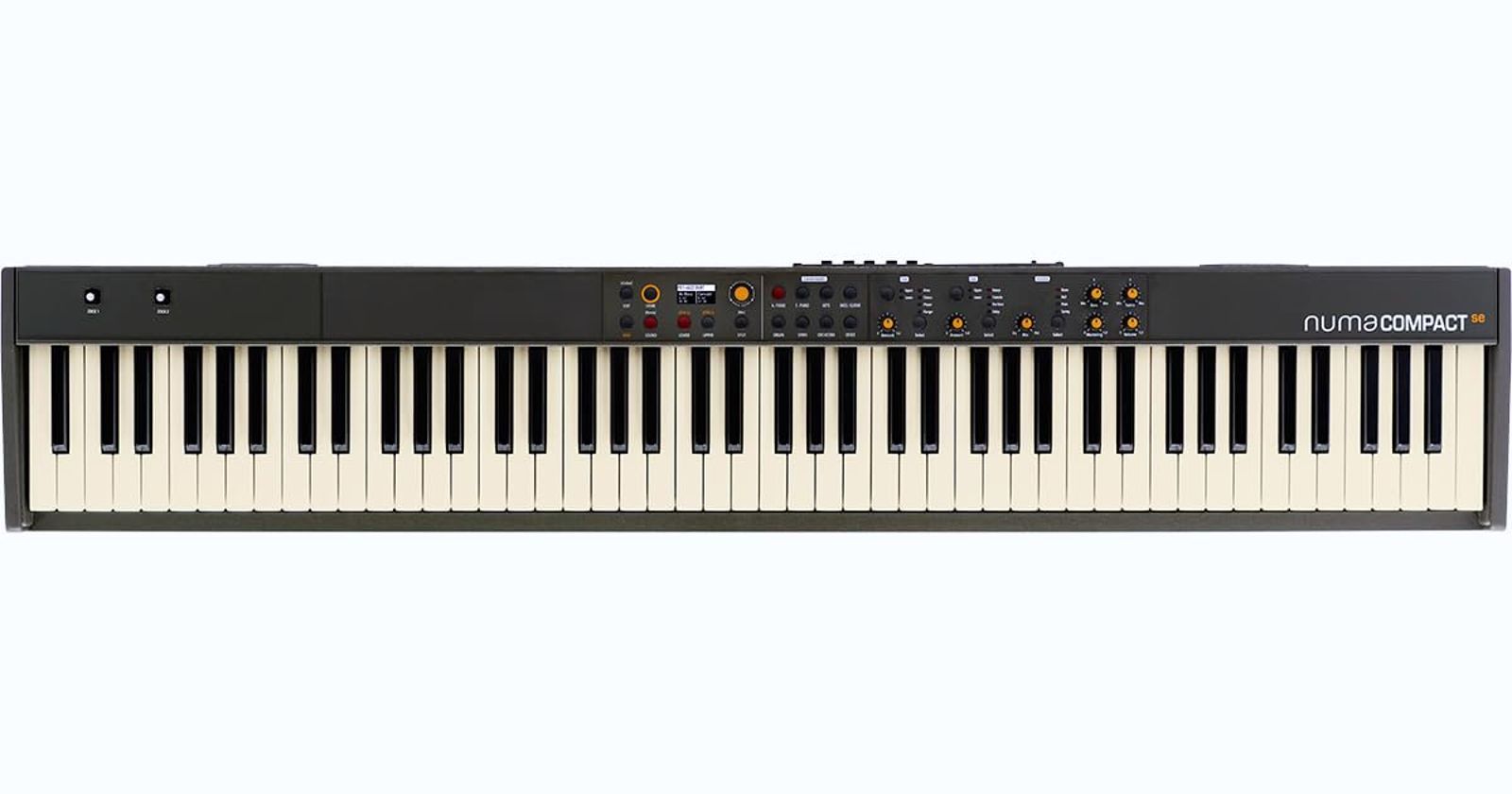 Studiologic Numa Compact SE is a professional-grade 88-note semi-weighted digital piano with aftertouch, featuring 2x10W amplification with elliptical speakers. This compact yet powerful instrument includes 148 sounds (pianos, keyboards, synthesizers, organs), dual effects processors, 200 polyphony channels, and a user-friendly 128×64 OLED display. With 2 programmable control joysticks and comprehensive EQ/mastering tools, it’s ideal for both studio and stage use. Includes DC power adapter.